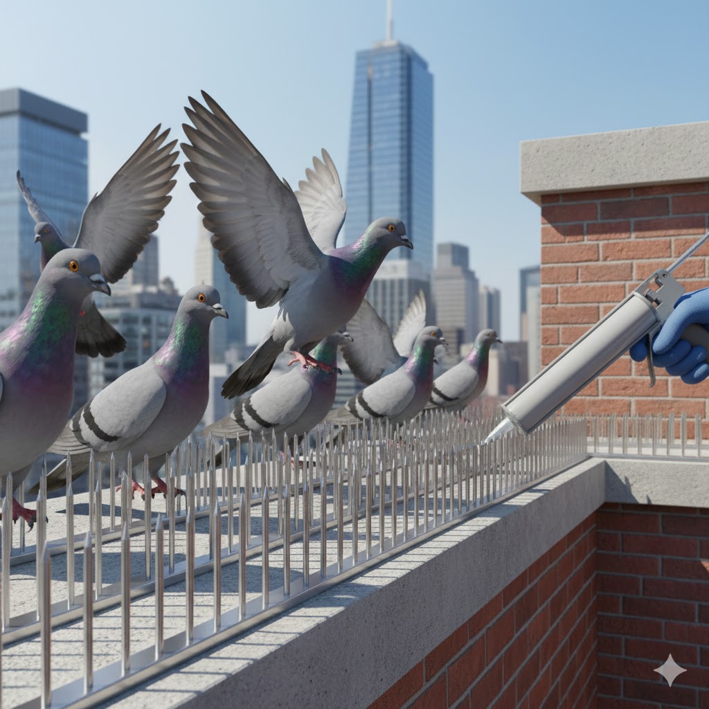 Humane bird control methods including netting and spikes to prevent nesting and protect your building from damage and droppings.